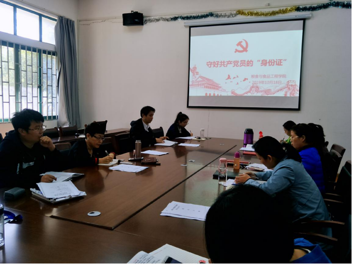 10月18日粮工学院党总支开展了“不忘初心,牢记使命”——守好共产党员的“身份证”的主题教育活动。会上祝书记以守好共产党员的“身份证”为主题,为beat365官网全体教职工作了一堂主题鲜明、内涵丰富、紧密联系实际的主题党课。
