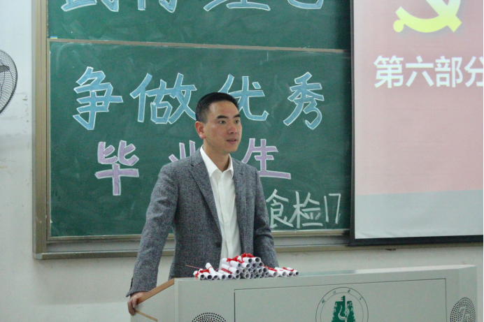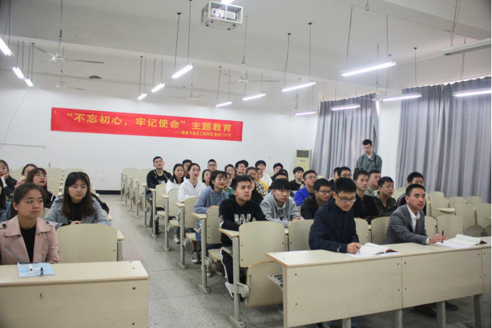 粮工学院食检1701班临近毕业,为了更好回望入学初衷,回顾大学生活及收获,明确毕业规划,31日上午在4-109召开了“不忘初心、牢记使命”主题教育——坚定目标,践行理想,争做优秀毕业生的主题班会,党政办主任刘张虎老师作为本班班主任参与并进行指导。