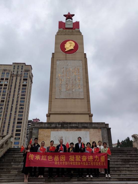 为庆祝建党100周年,进一步唱响时代旋律、传承和发扬红色革命精神,激励广大教职工勇担职责和使命,凝聚向上向善、奋发有为的正能量,5月26日,粮食与食品工程学院党总支以“学党史、悟思想、办实事、开新局”为主题,组织全院党员和教职工到武汉防汛纪念碑开展建党百年红色游活动,通过重温红色历史,激发爱国热情,传承红色基因,凝聚奋进力量。