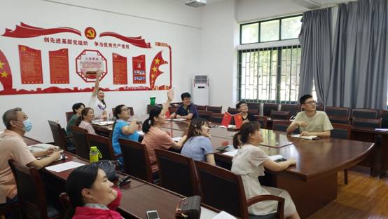 中午,大家先开展了党史知识竞答活动。在詹婧娴同志的主持下,大家踊跃抢答,既增加了学习的趣味性,又充分调动了学习的积极性。最终,冯书祥副书记以专业的知识储备摘取头名,获得优秀共产党员称号的陈洁同志获得高分紧随其后。