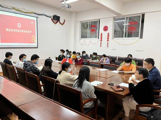 在重温入党誓词和集体学习党章后,学生党支部书记冯书祥首先通报了本次组织生活会、民主评议党员的准备工作,并代表支部报告2021年度工作情况,通报会前通过谈心谈话、召开座谈会、发放调查表等多种形式查摆问题情况,并制定了整改方案。