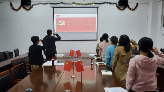 全体人员肃立,在张忠萌同志的领誓下,面对党旗紧握右拳,庄严宣誓。一声声铿锵有力的誓言,表达出党员干部永远跟党走的坚定决心。集体向党组织缴纳了10月份的党费,自觉履行了党员应尽的义务,增强了党员内心荣誉感和责任感。