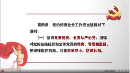 党员同志们采取个人自学的方式专题学习了“《中国共产党章程(修正案)》修改了哪些地方“,《中国共产党纪律处分条例》讲解系列视频,《中国共产党党员教育管理工作条例》等内容。通过学习,不断增强党章意识、规矩意识、纪律意识,努力形成遵规守纪的高度自觉。要坚决扛起管党治党责任,把严的基调、严的措施、严的氛围长期坚持下去,全面对照党章党规党纪要求,压紧压实管党治党主体责任、监督责任、第一责任人责任和“一岗双责”,以党的政治建设为统领,扎实推动全面从严治党向纵深发展,为奋进学院发展目标提供坚强政治保证。