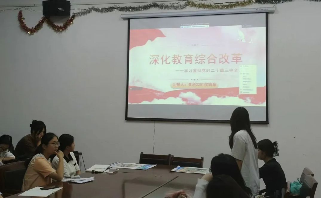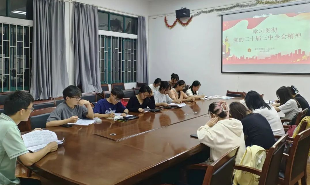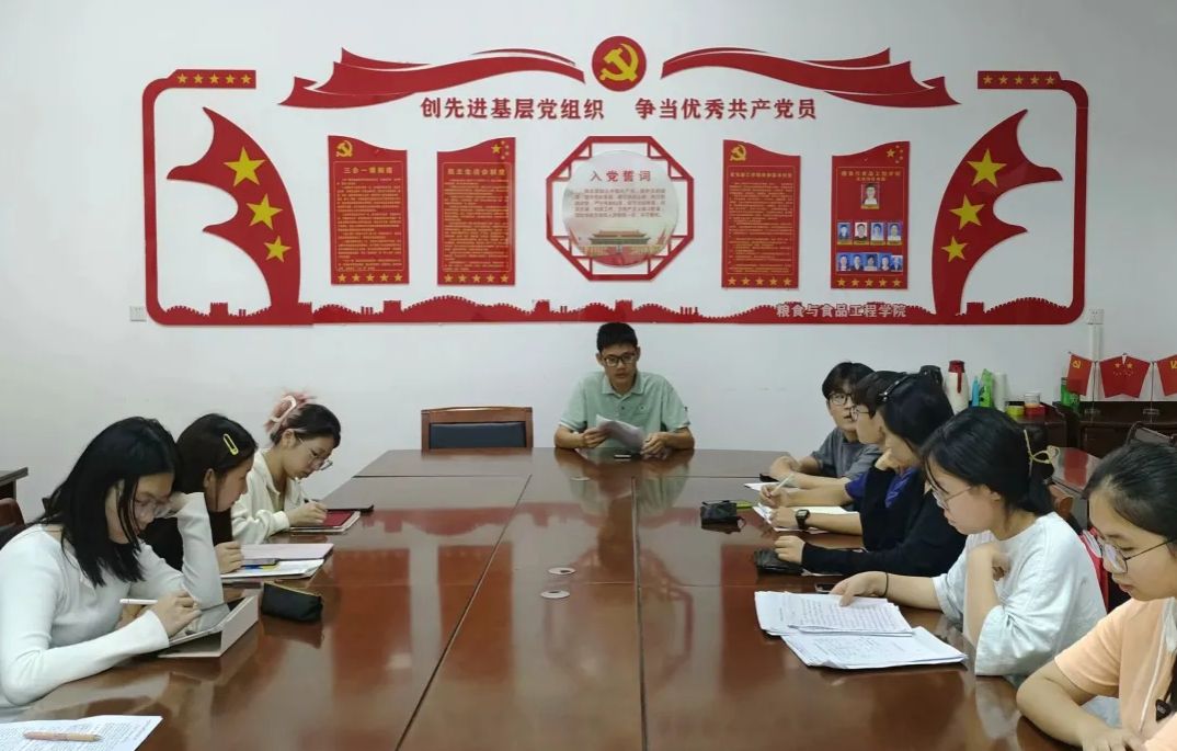 为深入学习党的二十届三中全会精神,2024年9月24日晚粮工学院第二党支部在知化楼101会议室开展了“党的二十届三中全会指引,党员先锋行”主题党日活动,此次活动由张诗羽同志主持,第二党支部书记冯书祥、粮工学院第二党支部各同志出席。