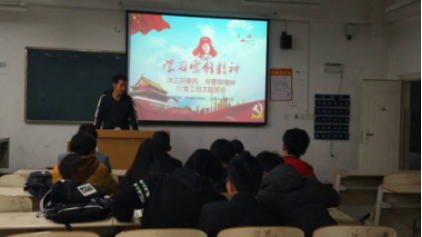 食工1701B班在班会中,同学们积极发言,都阐述了自己对“雷锋精神”的了解,团支书的讲话深赋感染力,要求同学们在实践中深入体会雷锋精神的含义,体验雷锋精神的魅力。辅导员也参与进来,和同学们互动。