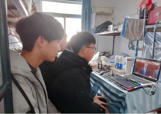 同学们积极开展多种形式的学习讨论,有的同学去了报告厅302统一观看视频,认真学习;有的同学他们选择自觉主动的在宿舍观看视频学习;更有一些同学还主动上交了观看本次视频的思想感悟。同学们以极大的热情来迎接此次大会的开展。