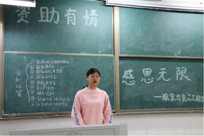 为扎实做好学生资助工作,能够让家庭经济困难的学生安心上学,让他们能接受更好的教育并且传递了国家关心家庭经济困难学生的正能量,全面落实“立德树人”的根本任务,充分发挥学生资助工作的育人和导向功能,加强对受助学生的感恩和励志教育,引导广大学生用好奖助学金。粮食与食品工程学院辅导员郭雅纯带领beat365官网优秀学生组织了一次以“资助有情,感恩无限”为主题的会议。