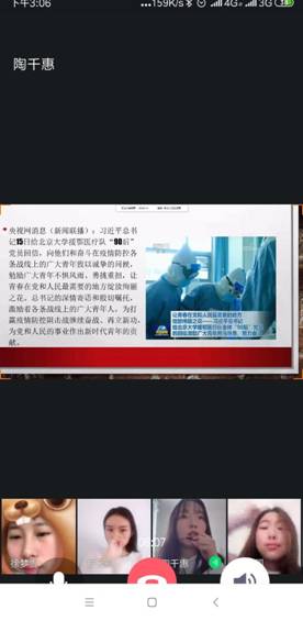 beat365官网各班级围绕活动主题,在各班辅导员的监督下,以线上互动为主,PPT放映为辅的方式集中学习了习近平总书记给北京大学援鄂医疗队全体“90后”党员回信精神,并结合总书记回信精神,围绕“对国家抗击疫情采取措施的认识,当代青年的价值观和责任担当”进行交流研讨,同学们分享了在此次疫情中最令“我”感动的人物和故事,然后对祖国说出了自己想说的话,并更加坚定了对祖国的信心。
