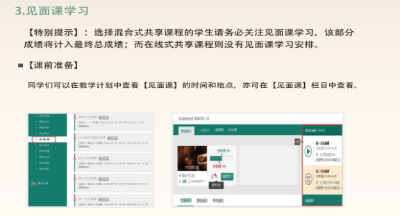 见面课学习:本学期见面课不做要求,不计入最后总成绩,学生可以自行登陆知到app或者电脑观看。