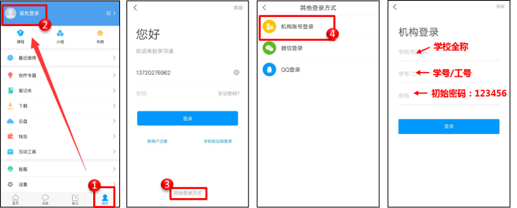 第二步:单位账号登录学习通,切勿自己注册账号;