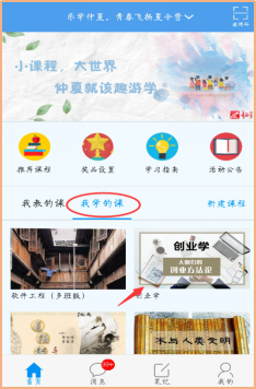 第三步:进入“我的课程”,单击课程名字,即可开始学习;