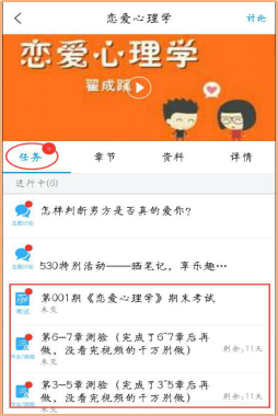 第五步:切换”任务“,完成课程作业和考试。