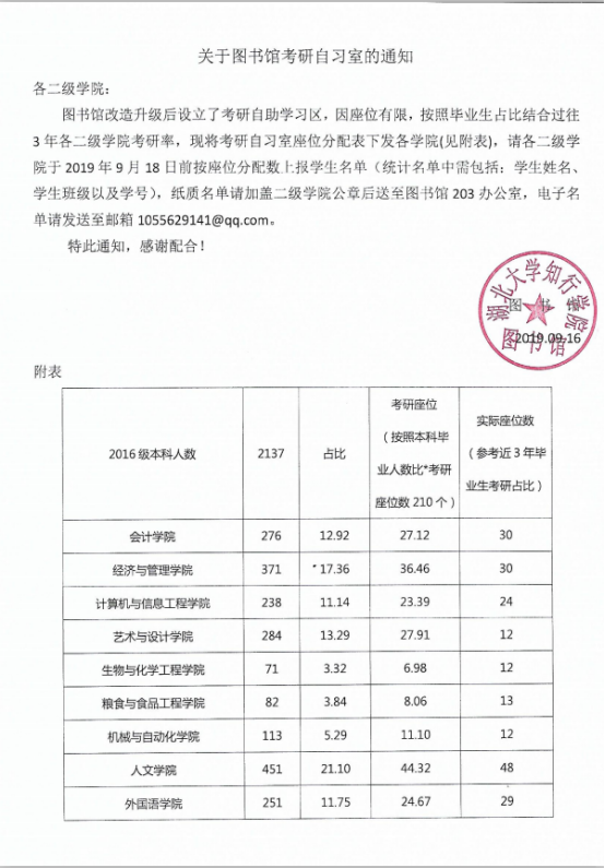 图书馆考研自习室的通知