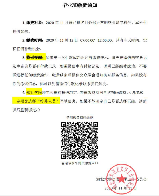 毕业生普通话测试缴费通知