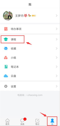 第三步:点击我,进入“课程”应用,单击课程后进入章节学习界面。