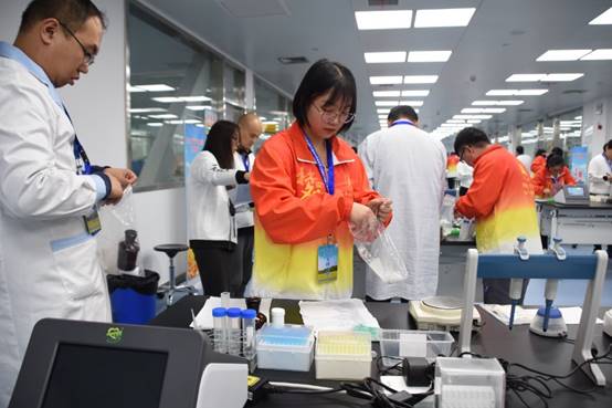 此次竞赛由省粮食局、省人社厅、省总工会联办,省粮油食品质量监督检测中心和省储备粮油管理公司承办,是我省粮食行业一次高水平的职业技能比武,也是我系学生作为志愿者参与人数最多的一次省级大赛。比赛前一周,我系近20名优秀学生志愿者已到省粮油食品质量监督检测中心做农产品食品检验员操作比赛项目相关的准备工作,包括比赛中使用的仪器设备的摆放和调试、样品的制备、玻璃仪器的准备、比赛工位的贴标和管理。比赛过程中,在候场区、比赛区、样品准备区、后勤区等各个场地都能看到统一红色着装的学生志愿者。每组比赛结束,志愿者们迅速更换相关的样品和辅助用具,他们忙碌的身影绘成了赛场上一道青春亮丽的风景。