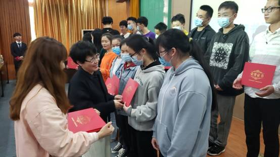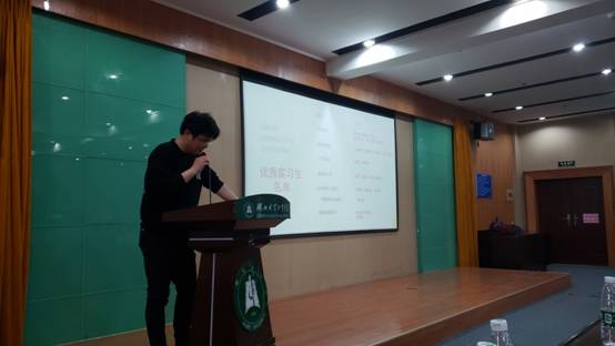 会上,祝方清书记对2020-2021学年度学生实习总体情况进行了介绍和总结,对同学们在实习期间的表现给予了充分的肯定,对实习期间虚心学习、勇于吃苦、表现突出的同学进行了表扬。综合同学们在实习期间的表现,根据学院《实习管理规定》,经实习指导老师提名,学院审核,共授予24名同学“优秀实习生”荣誉称号。学院院长刘齐宣读表彰决定,并颁发奖状和奖品。6名优秀代表分享了实习就业经历,从实习双选会准备、岗位培训、实习内容及就业经历与到会学生进行了细致的分享,让同学们对实习就业有了新的认知,对自己的专业学习也有了更清晰的规划。