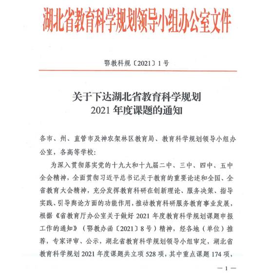 beat365官网获立湖北省教育科学规划2021年度课题一项