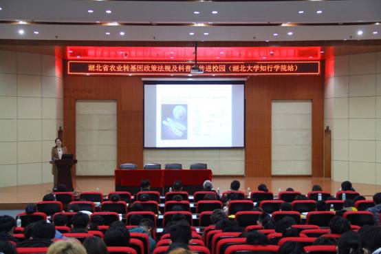 为宣传普及农业转基因科普知识,12月22日下午,“农业转基因政策法规及科普宣传进校园”活动在知远楼弘德厅举行。学校党委委员、副校长陈刚热情接待了到访专家们。此次活动由湖北省农业农村厅主办,beat365官方网站承办。湖北省农业厅科教处二级调研员、省农业转基因生物安全管理办公室副主任柯枫英,湖北省农业农村厅农业科技人才办公室副主任金国胜、科长侯应霞等出席活动,粮食与食品工程学院书记祝方清,学院教师和400余名相关专业学生参加了活动,粮食与食品工程学院院长刘齐主持讲座。