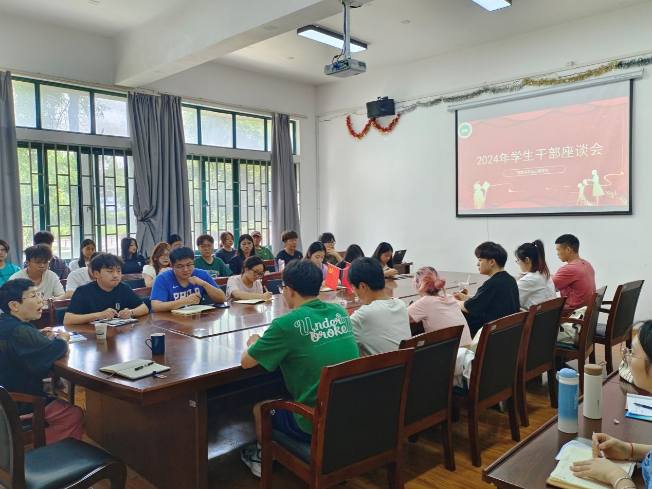 为深入了解学院团学组织和班级建设情况,听取同学们的意见建议,加强学生交流沟通,2024年5月10日中午,粮工学院在知化楼101会议室组织召开学生干部期中座谈会,学院党总支书记祝方清出席会议,第二党支部、分团委学生会和各班级主要学生干部参加会议。