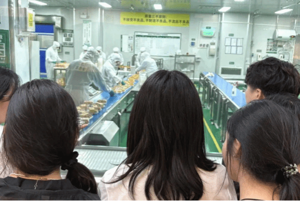 在仟吉食品工厂,同学们实地观摩了智能化生产线。从原辅料投入到成品产出,全流程自动化操作让大家眼前一亮。企业严格执行SSOP(卫生标准操作程序),从人员卫生到设备清洁,每个环节都有明确规范,确保生产环境安全卫生。数字化设备对生产关键参数的精准控制,如对温度、重量等参数的实时监控,让同学们直观感受到“标准化 + 智能化”如何提升食品工业效率、保障产品品质,切实理解了“食品安全是企业生命线”这一深刻内涵。