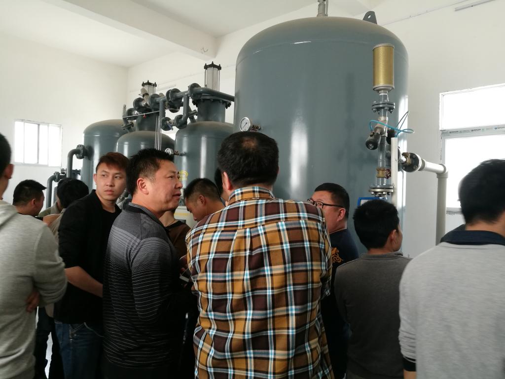 经过两个多小时的行程,到达了目的地,我们首先来到了氮气制备室。仓库管理员详细介绍了其设备的工作原理,同学们对于有疑惑的地方就积极向老师询问,老师和仓库管理员们也都一一对其进行解答。老师和仓库管理员就制氮的过程及设备的操作安全性也做了一定的讨论。
