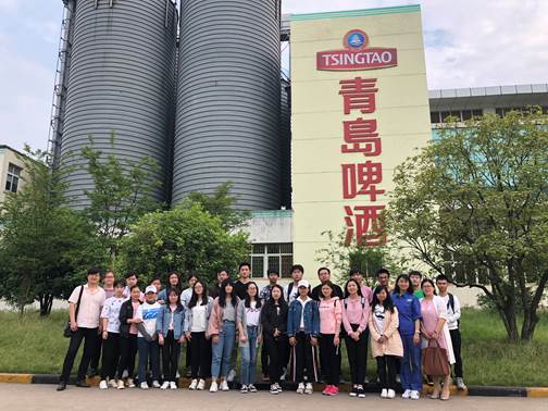 下午:参观了青岛啤酒公司,青岛啤酒创建于1903年,此次参观让同学们感受到了青啤人的热情、温馨。同学们学习了青岛啤酒生产的卫生与安全、企业文化及生产工艺流程,讲解师傅带领参观啤酒的生产车间:糖化—煮沸—冷却—发酵—过滤—罐装,每一步均是自动化控制,酒不醉人人自醉。