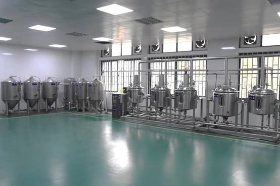 实验室现有设备:菌种选育的恒温培养箱、生化培养箱、振荡器、光学显微镜等;发酵工艺的15L好氧发酵设备、成套的啤酒生产线;检测分析的分光光度计、酒精计、糖度计等。