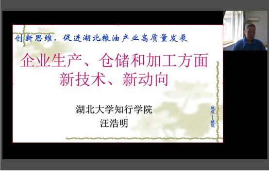 突如其来的疫情使得湖北省工业生产和经济建设受到了较大的影响。如今各行各业复工复产在即,作为关系到国家安全的粮食行业也在紧锣密鼓的准备复工复产相关工作。面对此次疫情,湖北省粮食行业协会充分响应习总书记“复工复产”的号召,在目前仍无法集中开展学习的情况下,针对企业复工复产所关心的焦点问题,组织开展了【战疫.赋能】线上公益直播课堂活动,帮助粮食行业复工复产。我校粮食与食品工程学院汪浩老师受湖北省粮食行业协会邀请,于4月26日19:30分,在直播课堂上作了“粮食仓储与加工的新动向”的专题讲座。