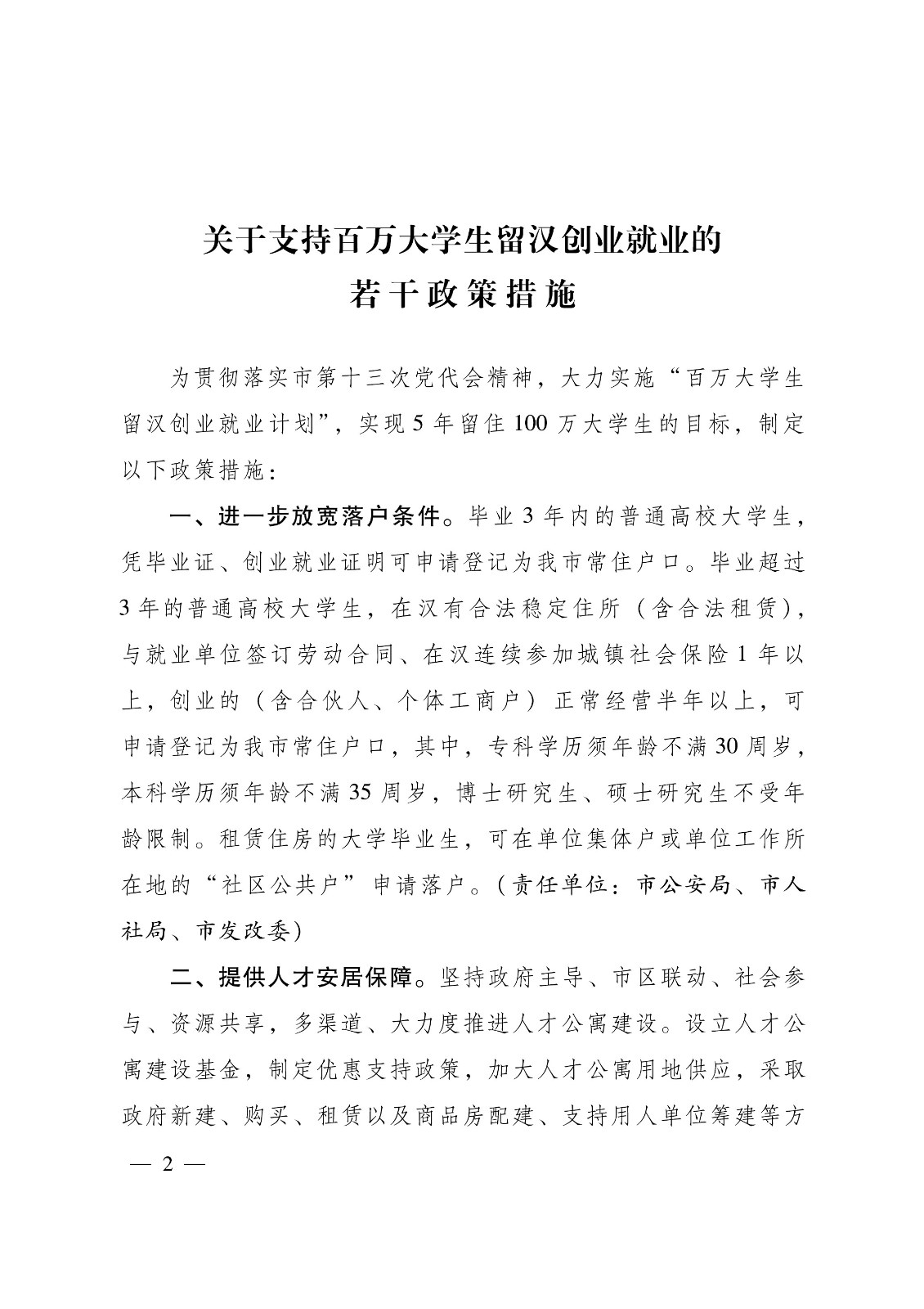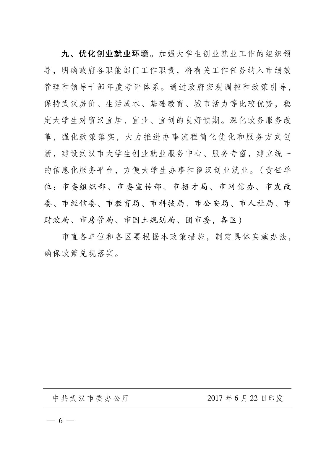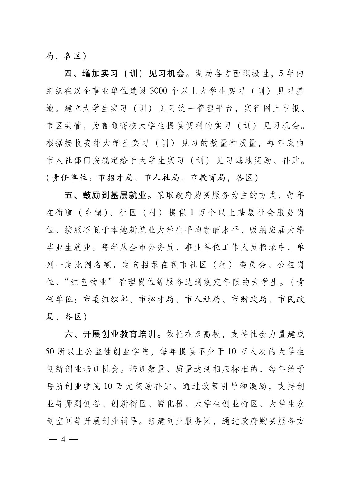 关于支持百万大学生留汉创业就业的若干政策措施