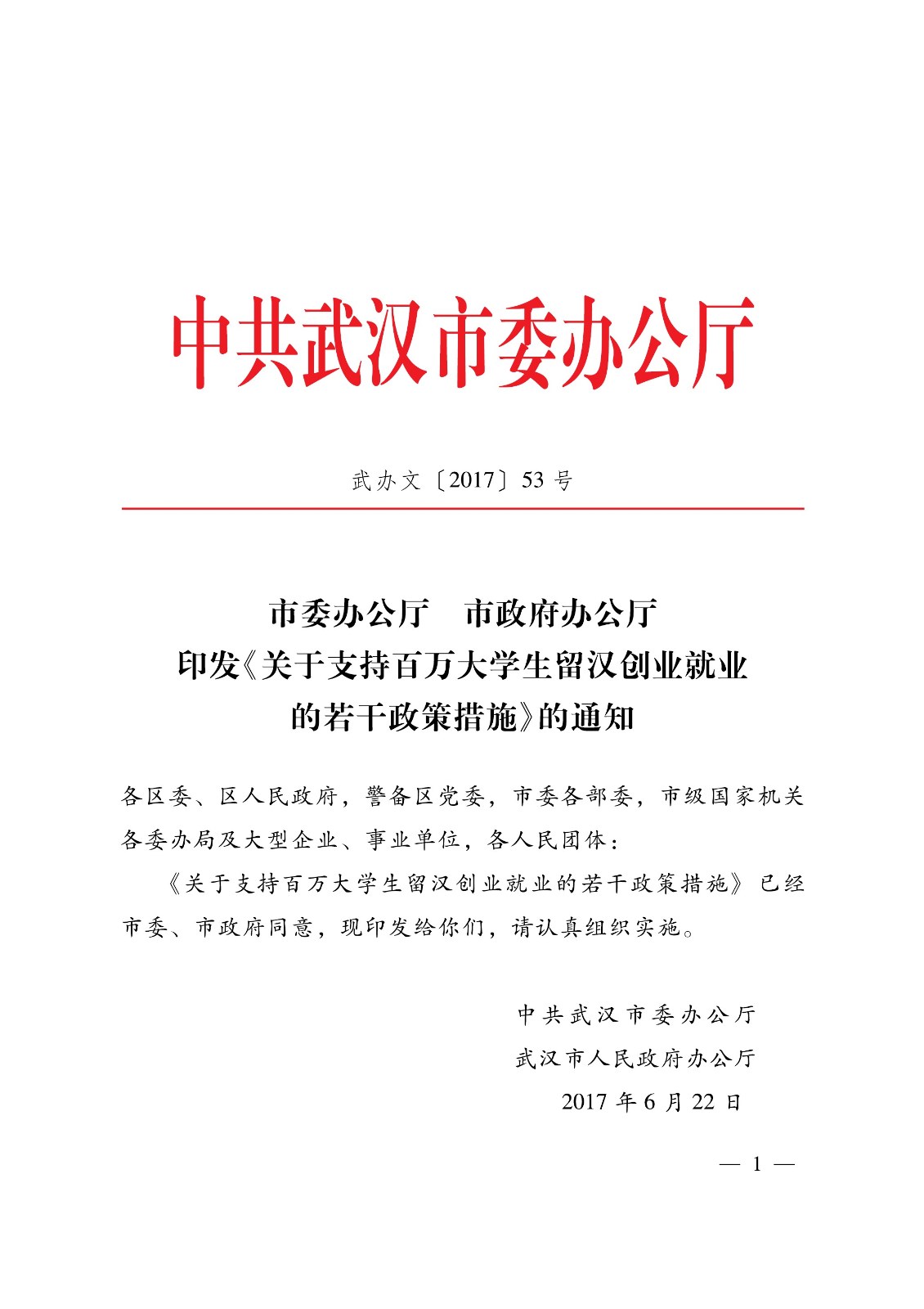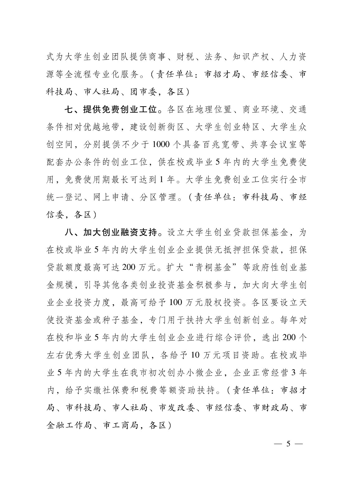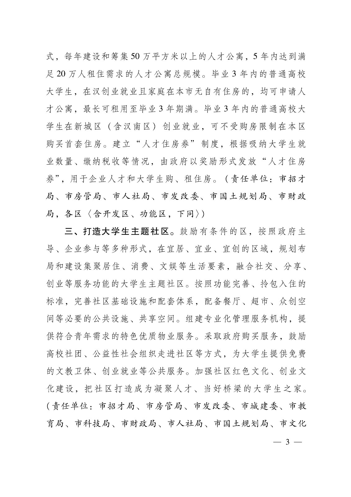 关于支持百万大学生留汉创业就业的若干政策措施