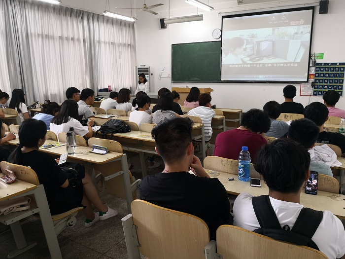 6月14日下午,武汉惠尔康扬子江乳业有限公司到我系为2019届毕业生举办专场宣讲会,我系全体2019届毕业生到场参加。公司人事部董经理为同学们讲解了公司的历史沿革、企业文化和发展前景,并详细说明了招聘岗位、薪资待遇,耐心解答同学们的各种问题。宣讲完毕后,同学们积极投递简历,并热情向企业咨询。