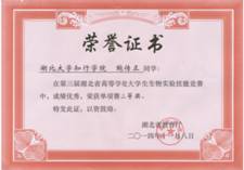 指导学生:参加“第五届全国大学生生命科学创新创业大赛创业组二等奖”;参加“全国大学生挑战杯”项目“野生水果资源的综合开发与利用”获创业组湖北赛区银奖,“果蔬类可食性保鲜涂膜的研究与开发”获创新组湖北赛区铜奖;指导学生参加湖北省大学生生物技能竞赛获二等奖;指导学生论文“同品牌生啤与熟啤对果蝇性活力的影响”获省级优秀学士学位论文。