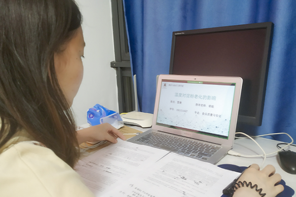 粮食与食品工程学院院长刘齐介绍,本科毕业论文是普通高等院校学生学业的最后一个环节,是对本专业学生集中进行科学研究训练而要求学生毕业前独立完成的一项“作业”。从毕业论文选题的拟定、导师学生的双选、下达任务书、开题、实验或开展研究工作,“答辩”就是最后的临门一脚。按照毕业论文工作方案,绝大多数学生已经在去年秋季学期完成了论文主体工作即实验研究。通过综合研判,在本学期伊始,粮食与食品工程学院就下达了毕业论文工作安排,对毕业论文的后续工作进行了统筹规划。疫情期间,学院要求加强指导教师和毕业生的联系,通过QQ、微信、Email等多种方式,开展指导教师对毕业生的线上指导,通过毕业设计(论文)管理系统完成对过程文件和资料的收集和归档。基于学校防疫工作的总体安排,最终将原定于“线下”的论文答辩环节也搬到了“线上”完成。这次“云”答辩不是疫情之下的仓促之行,学院提前一个多月制定了网络答辩方案,通过广泛调研了解,确保答辩当天学生网络有保障。临近答辩前3天,学院教学、学工通力合作,组织参与答辩的学生开展了一次演练,帮助学生调试设备,熟悉流程。精心的准备确保了本次答辩的顺利进行。